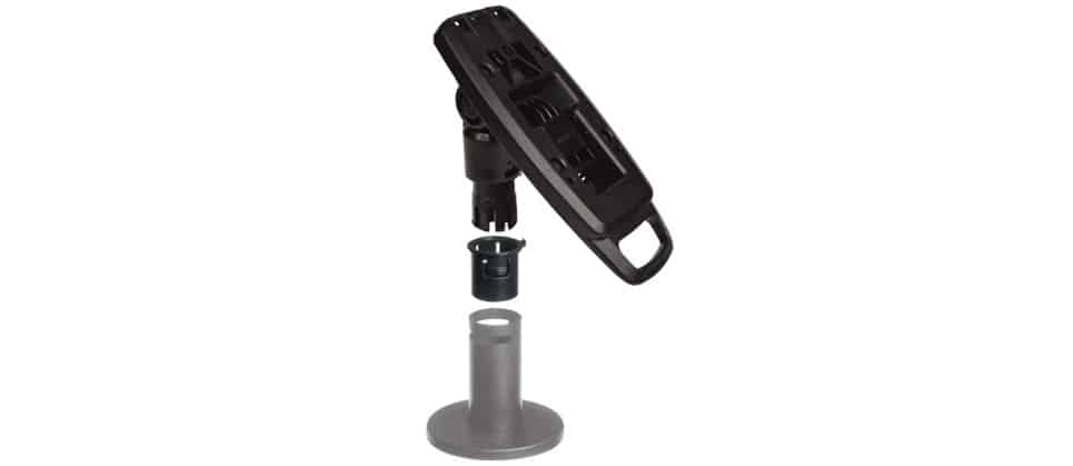 Fits into pre-installed 3rd party pole bases, such as Spacepole